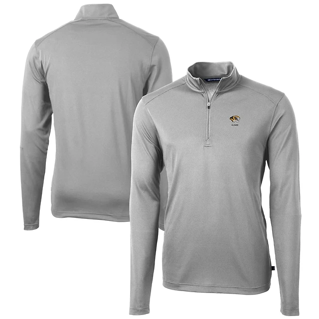 Pull zippé recyclé Virtue Eco Pique pour homme, gris, Cutter & Buck, Missouri Tigers