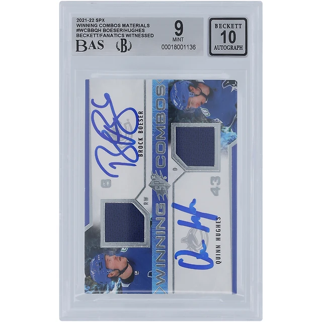 Quinn Hughes et Brock Boeser Vancouver Canucks autographiés 2021-22 Upper Deck SPx Winning Combos Materials Dual Relic #WC-BBQH Beckett Fanatics Witnessed Authenticated 9/10 Card