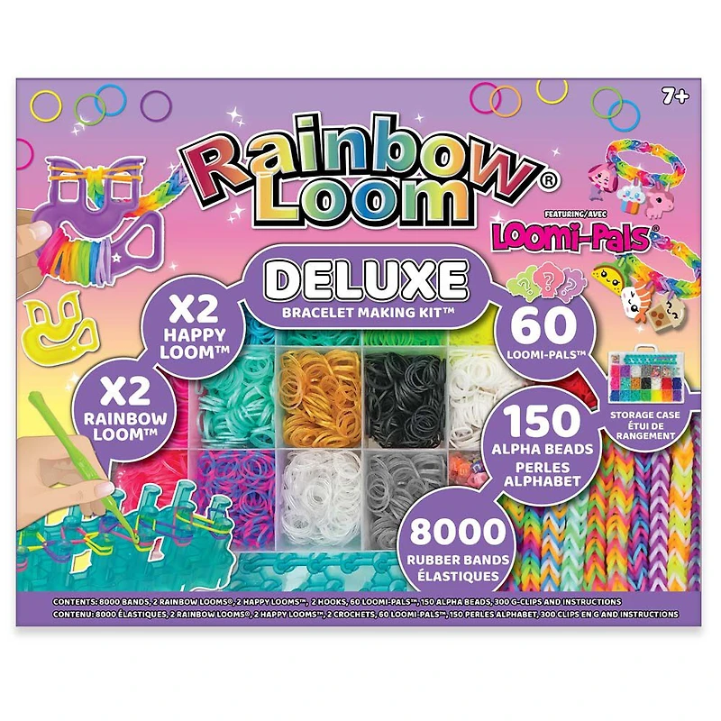 Rainbow Loom offers high-quality looms and bands that provide an innovative outlet for kids that promotes creativity, fine motor skills, and social interaction. Explore and stimulate your creativity with Rainbow Loom! This Rainbow Loom Black Friday Exclusive includes 8000 Rubber Bands, 60 Loomi-Pals Charms, 150 Alpha Beads, 2 Happy Loom and 2 Rainbow Loom. The high quality storage case.