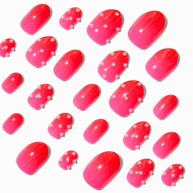 Red Ombré Pearl Stiletto Press On Vegan Faux Nail Set - 24 Pack