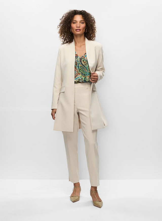 Redingote Jacket, Paisley Blouse & Slim Leg Pants