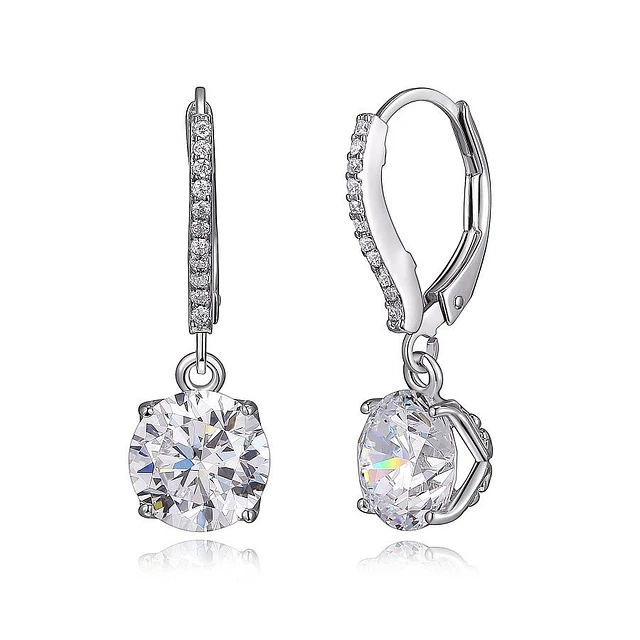Reign Sterling Silver & Cubic Zirconia Round drop Leverback Earrings