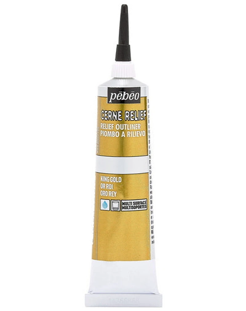Cerne Relief outliners by Pebeo are a water-based opaque paste which is applied directly from the tube, using the plastic nozzle, to any clean surface and is used to create patterns or drawings, as well as to create outlines to contain and delineate liquid paints such as Vitrail, Ceramic or Fantasy colors. Use in combination with other mediums for mixed media applications(look for Mixed Media products by Pebeo), or use with Vitrail paints for stained glass effects.
