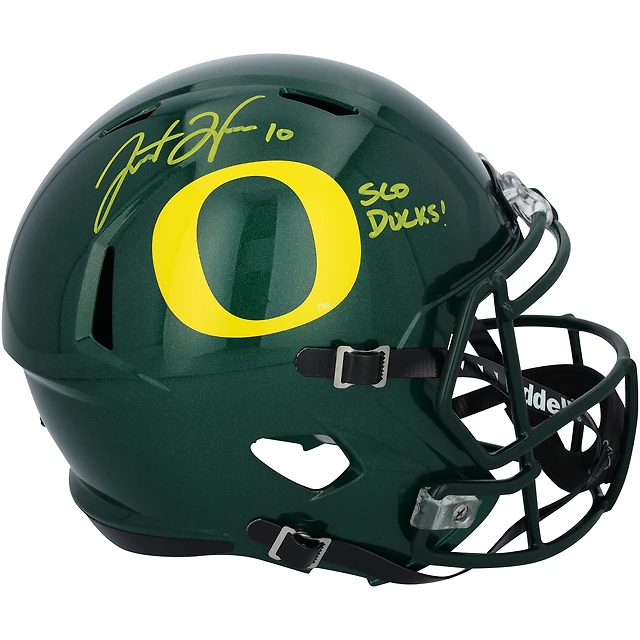 Réplique du casque Riddell Speed autographié par Justin Herbert des Oregon Ducks avec l'inscription « Sco Ducks »