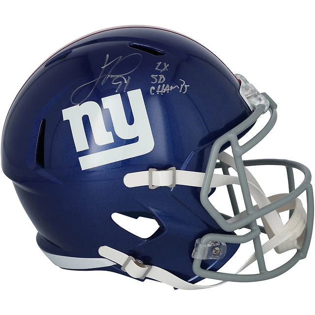 Réplique du casque Riddell Speed autographié par Justin Tuck des New York Giants avec l'inscription « 2x SB Champs »