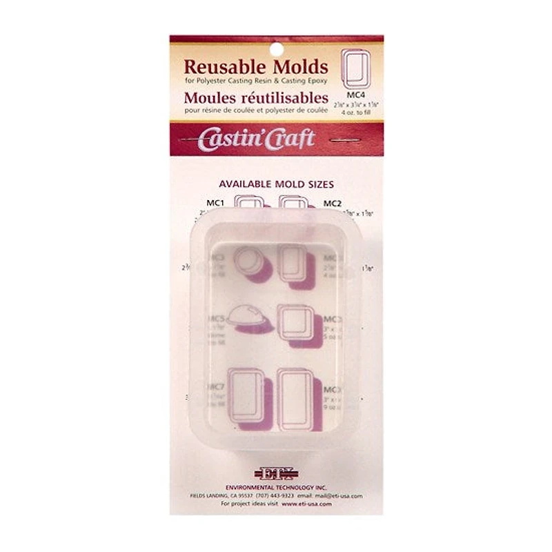 A re-useable, self-releasing polypropylene mould for use with epoxy and Castin' Craft Clear Polyester Resin. For even easier release, use the mould release agent. Dimensions: 2 1/8 x 3 1/4 x 1 1/8 in.