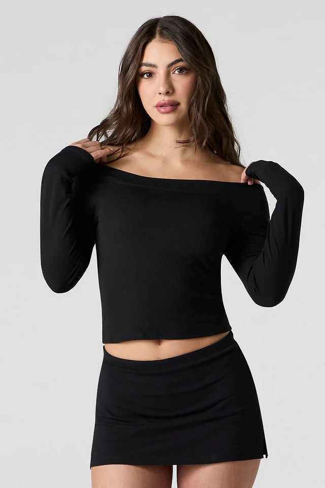 Ribbed Off Shoulder Long Sleeve Top