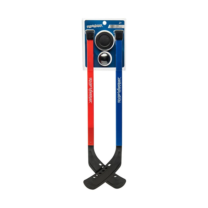 R Exclusive, only available at Toys R Us Canada. The Road Warrior Player Stick Combo is a 4 piece set. Be ready for game time on any surface. Perfect for play indoors or outdoors.
