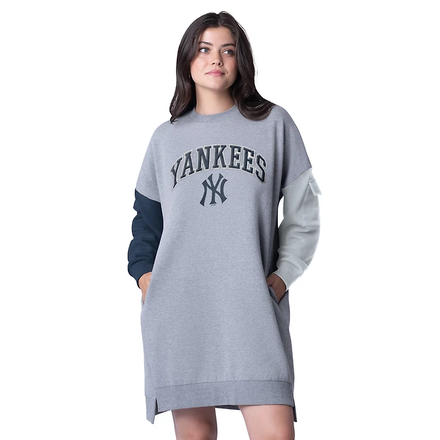Robe-basket à manches longues G-III 4Her par Carl Banks pour femme, gris chiné, motif New York Yankees Free Ball