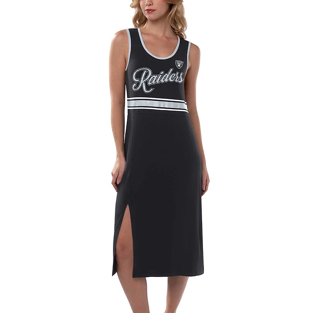 Robe longue noire G-III 4Her par Carl Banks pour femmes des Las Vegas Raiders Main Field