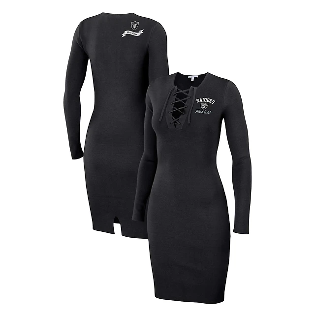 Robe noire à manches longues lacets WEAR by Erin Andrews pour femmes des Las Vegas Raiders