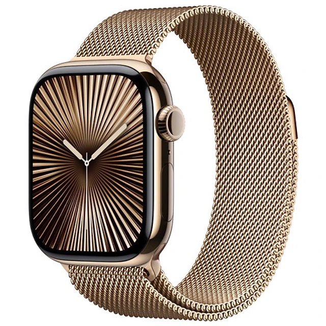 TELUS Apple Watch Series 10 (GPS + Cellular) 42mm Gold Titanium Case with Gold Milanese Loop-M/L-Monthly Financing