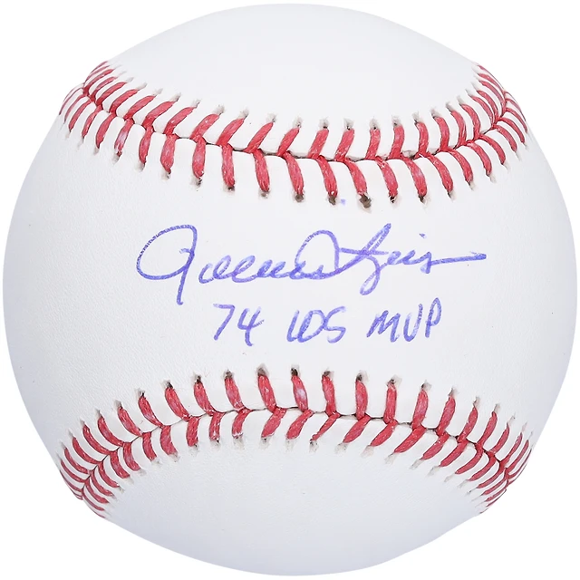 Rollie Fingers, joueur des Oakland Athletics, a dédicacé une balle de baseball avec l'inscription « 1974 WS MVP »