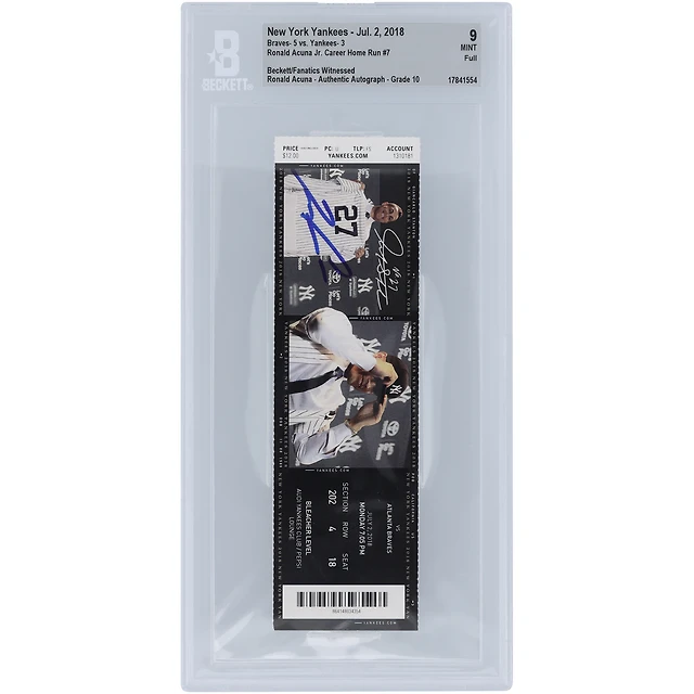 Ronald Acuña Jr. Atlanta Braves Career Home Run #7 Beckett Fanatics Witnessed Authenticed 9/10 Ticket du 2 juillet 2018