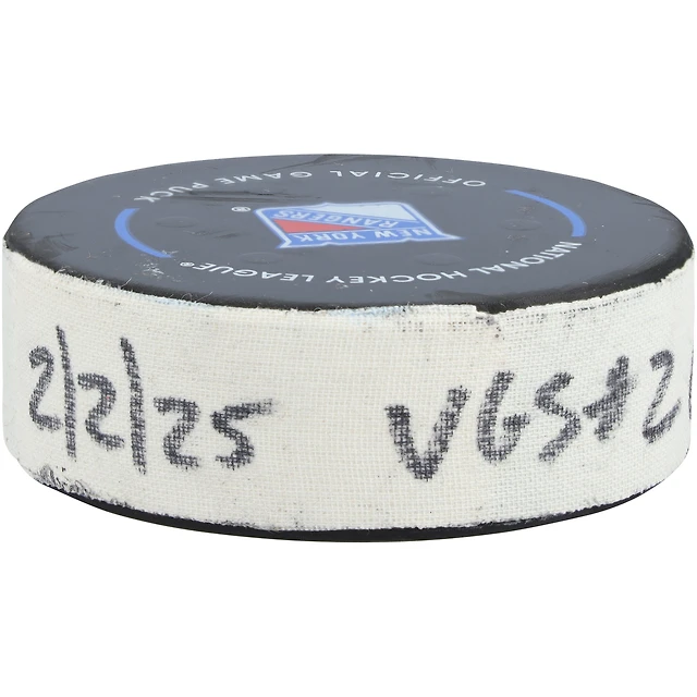Rondelle de but utilisée par Jack Eichel des Golden Knights de Vegas contre les Rangers de New York le 2 février 2025 - Deuxième de deux buts marqués