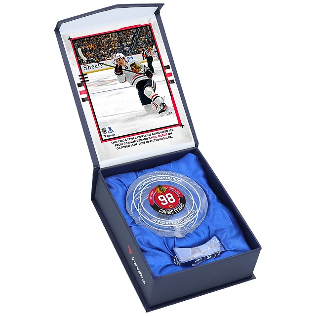 Rondelle de cristal de Connor Bedard pour les débuts des Blackhawks de Chicago dans la LNH - Remplie de glace utilisée lors du premier match