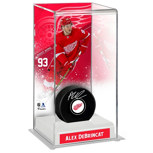 Rondelle de hockey autographiée par Alex DeBrincat des Red Wings de Detroit avec étui de luxe