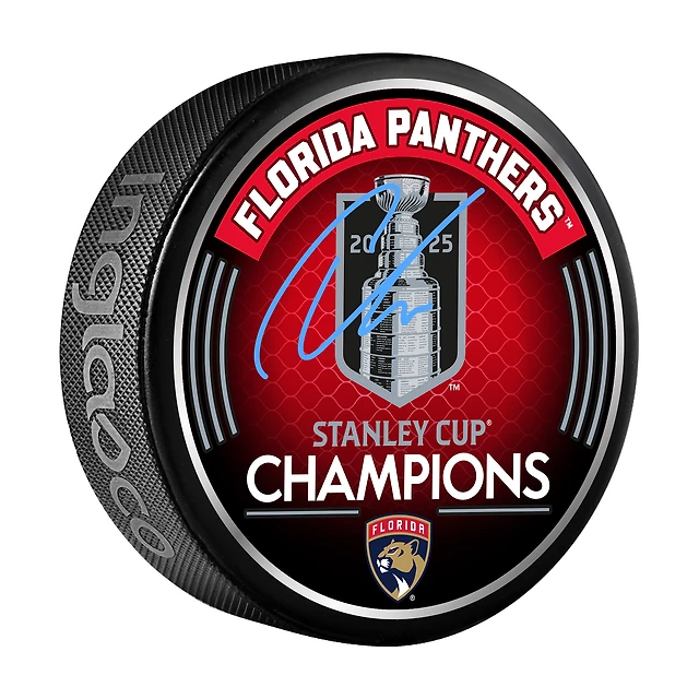 Rondelle de hockey autographiée par Carter Verhaeghe, champion de la Coupe Stanley 2025 des Panthers de la Floride