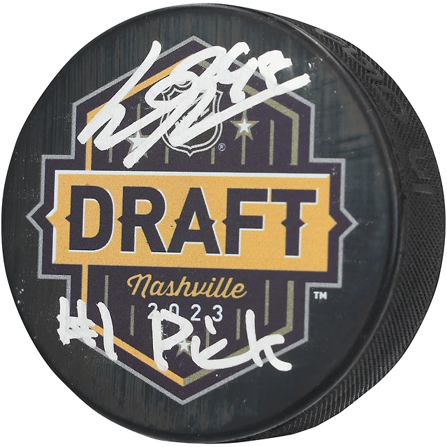 Rondelle de hockey autographiée par Connor Bedard des Blackhawks de Chicago lors du repêchage de la LNH 2023 avec l'inscription « #1 Pick »