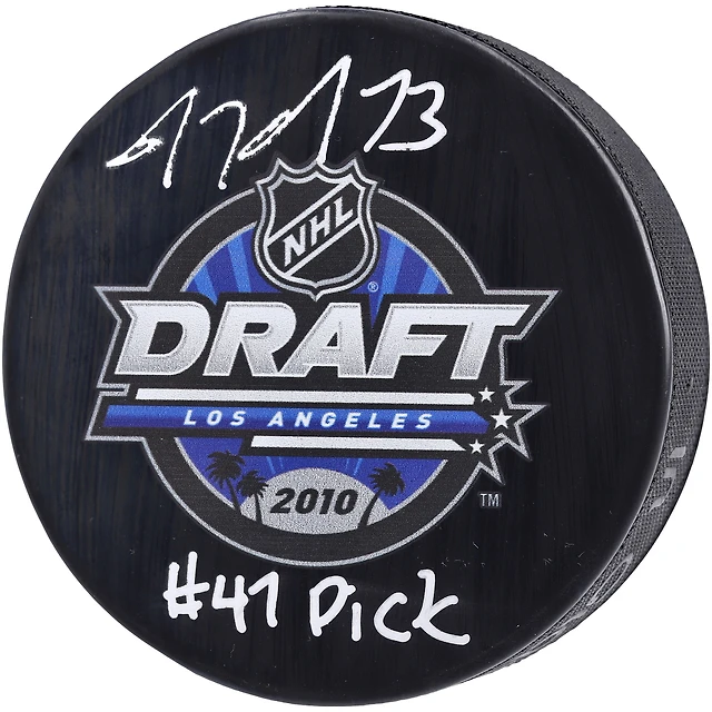 Rondelle de hockey autographiée par Tyler Toffoli des Flames de Calgary avec logo du repêchage de la LNH 2010 et inscription « #47 Pick »