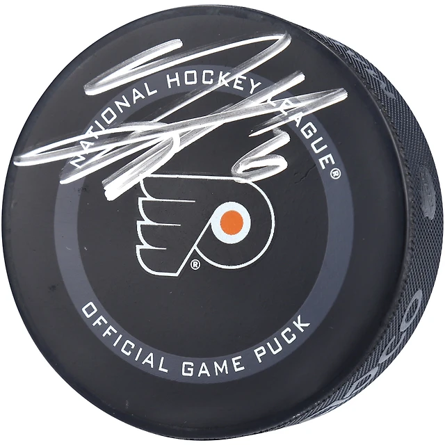 Rondelle de jeu officielle autographiée par Travis Sanheim des Flyers de Philadelphie, modèle 2021