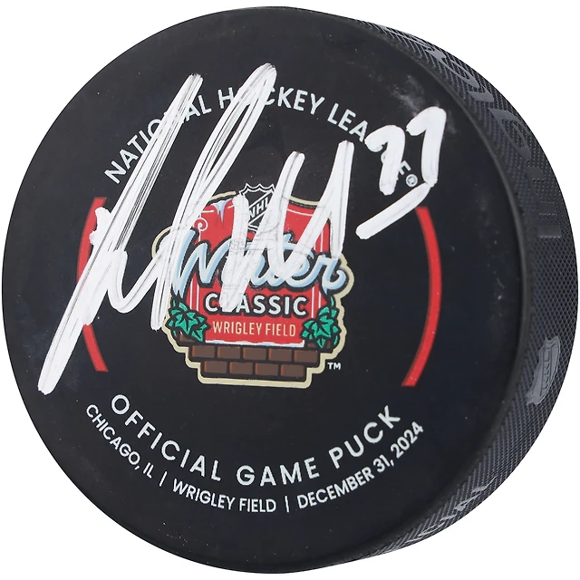 Rondelle de match officielle autographiée par Pat Maroon des Blackhawks de Chicago lors de la Classique d'hiver de la LNH 2025