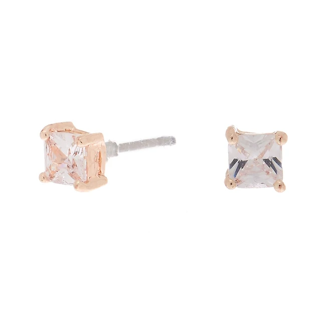 Rose Gold Cubic Zirconia 4mm Square Stud Earrings