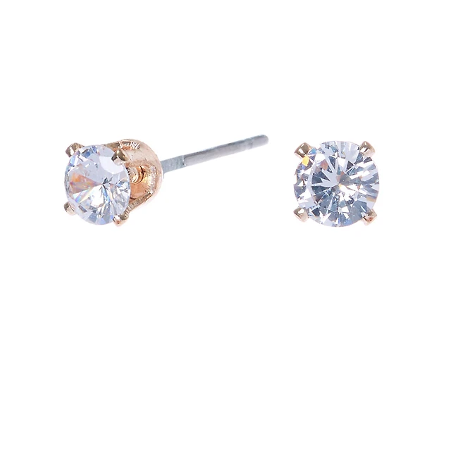 Rose Gold-tone Cubic Zirconia 4mm Round Stud Earrings