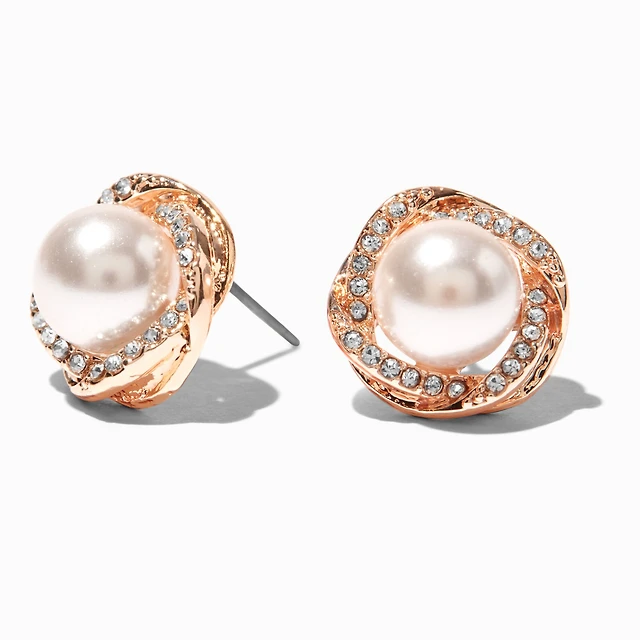 Rose Gold-tone Pearl & Crystal Halo Stud Earrings