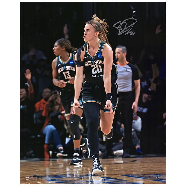 Sabrina Ionescu New York Liberty autographiée 16" x 20" célébrant en maillot noir