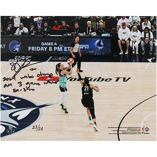 Sabrina Ionescu, New York Liberty, photographie dédicacée du tir à trois points gagnant du match 3 de la finale WNBA, 20 x 25 cm, avec plusieurs inscriptions - Édition limitée à 24 exemplaires