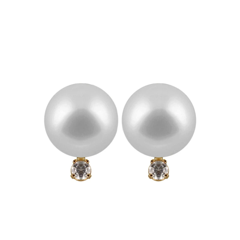 Saltwater White Pearl & Diamond Studs