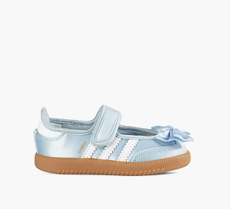 The adidas Samba Jane is a romantic spin on the sporty classic. Reimagining the classic style for F25, the brand takes notes from a Mary Jane shoe by swapping the style's signature lace-up fastening for a playful top strap. As for the rest of their profile, you'll find the usual suspects: a grippy rubber sole, foil lettering, and the iconic 3-stripes.