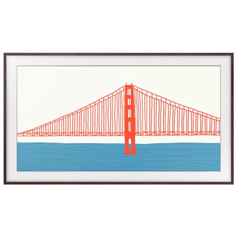 Compatible with 75" Samsung The Frame TVs Easy-to-install frame gives your television the look of a piece of art as it hangs on your wall Brown finish provides a warm aesthetic to complement your space