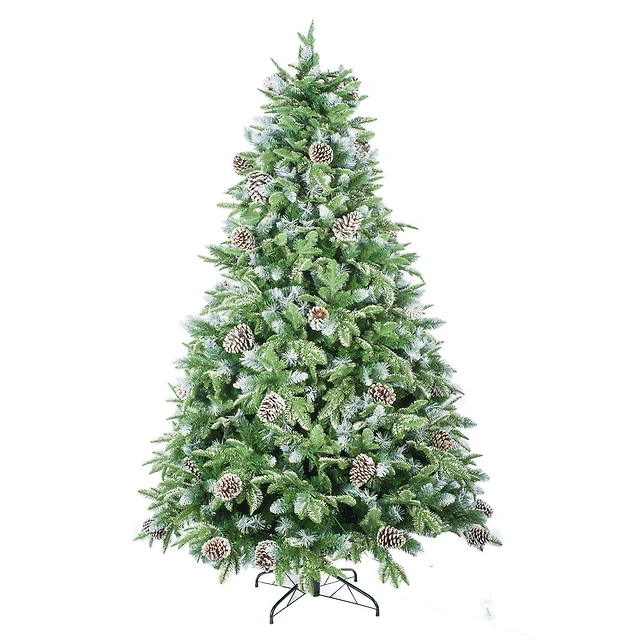 Sapins de Noël mixtes épicéa en PVC/PE bleu avec DEL blanc chaud et pommes de pin givrées