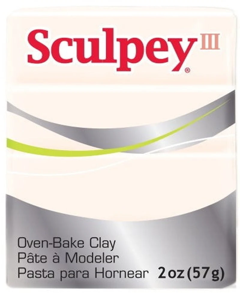 Sculpey III is the perfect medium for anyone who likes to create. This popular oven bake clay maintains tooling and detailing beautifully. Once cured, Sculpey III bakes hard and takes on a matte, bisque-type finish.It is soft and pliable, making it ideal for kindergarten and up. Excellent for crafting jewellery, figurines, home decorations … and even millefiori!It sculpts well with modelling clay tools, can be easily rolled and cut, colour-blended, extruded through the Sculpey Clay Extruder, or formed over armatures such as foil, wire or glass.This pack contains 2 oz of Sculpey III Clay.Instructions for use: Bake at 275 °F (130 °C) for 15 minutes per 1/4 in (6 mm) thickness Do not microwave Baking should be completed by an adult Do not exceed the above temperature or recommended baking time
