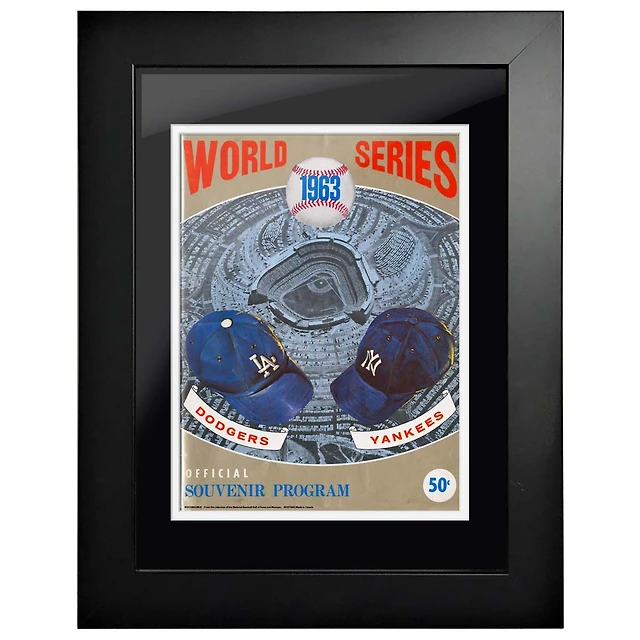 Série mondiale des Dodgers de Los Angeles contre les Yankees de New York 1963 - Couverture de programme encadrée de 12'' x 16''