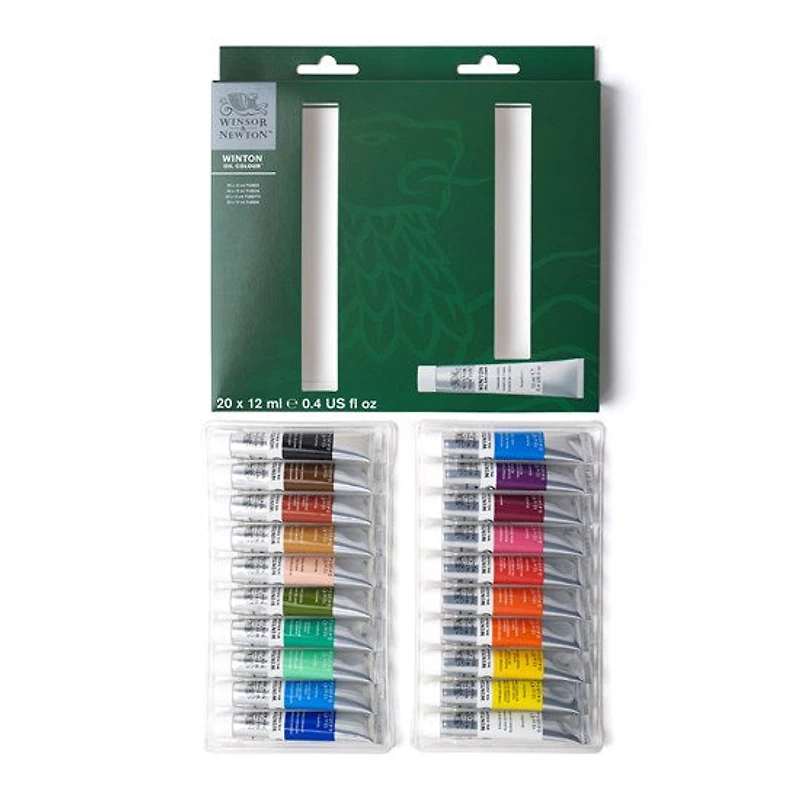 Made from high-quality pigments, Winton Oil Colours are durable, lightfast and permanent. Delivering consistent colour every time, their ready-to-use formulation means you can effortlessly work at any scale. Ideal for artists using large volumes of paint. This set contains 20 x 12 ml: Titanium White, Cadmium Lemon Hue, Chrome Yellow Hue, Cadmium Orange Hue, Scarlet Lake, Cadmium Red Deep Hue, Permanent Rose, Magenta, Cobalt Violet Hue, Phthalo Blue, French Ultramarine, Cerulean Blue Hue, Emerald Green, Viridian Hue, Sap Green, Pale Rose Blush, Burnt Sienna, Vandyke Brown, Lamp Black