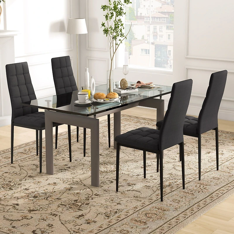 Set of 4 Fabric Dining Chairs Set with Upholstered Cushion and High Back