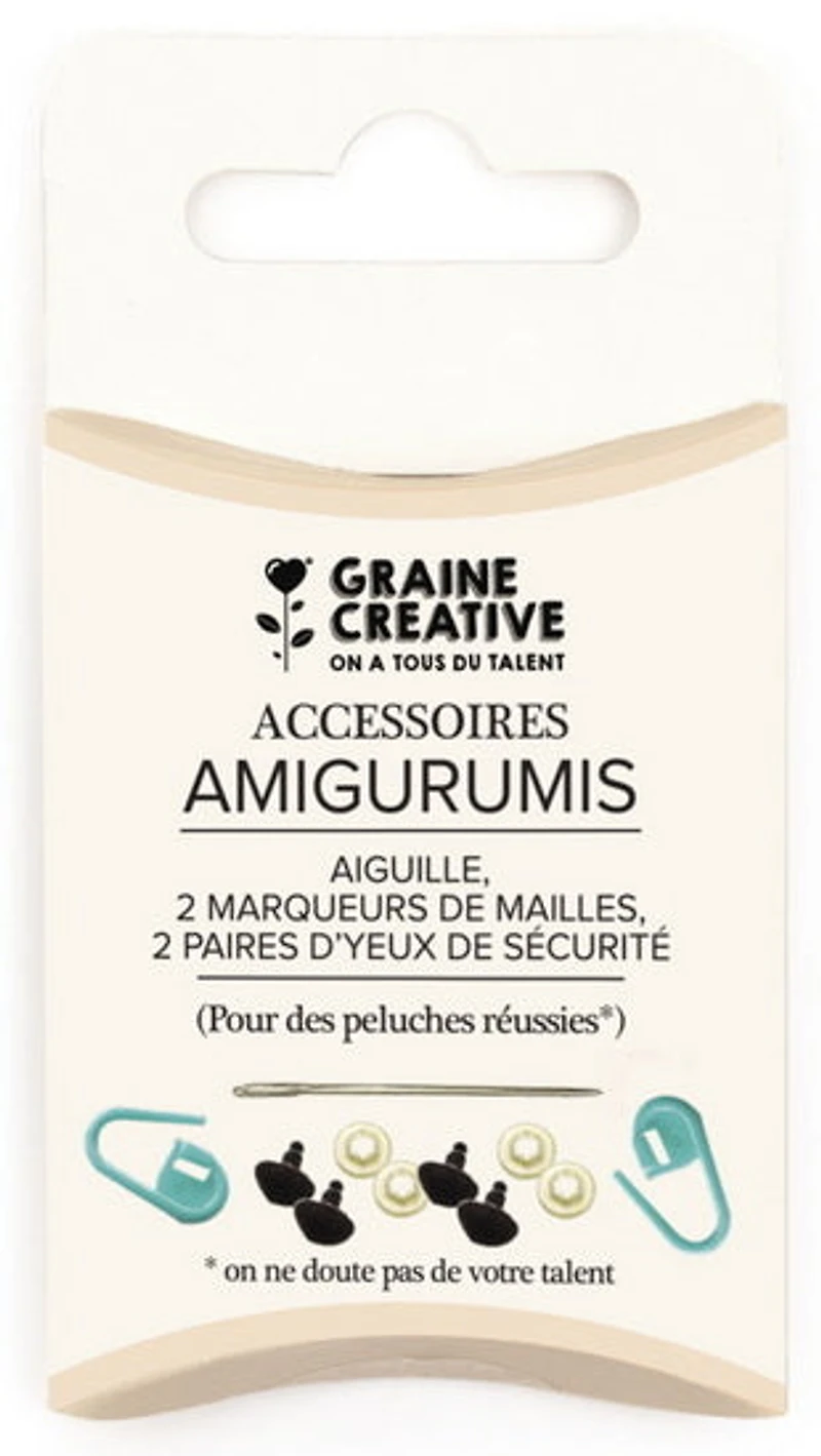 Complete your crochet kit with this Amigurumi Accessories Pack from Graine Créative, containing all the essentials to create your small crochet dolls and animals. Practical and complete, this set allows you to work on your amigurumi projects easily and with precision.