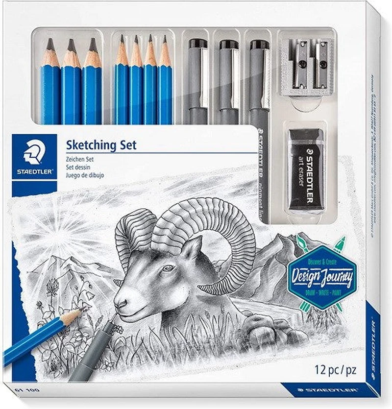 Ideal for detailed sketches and hobby artist applications, this complete sketching kit comes with premium quality artist pencils, jumbo graphite pencils, pigment liners, a double-hole sharpener and an eraser in an easy-to-use box. It's particularly suitable for writing, drawing, sketching and hatching, as well as for professional graphic and artistic applications on paper and matte drawing film.Includes: