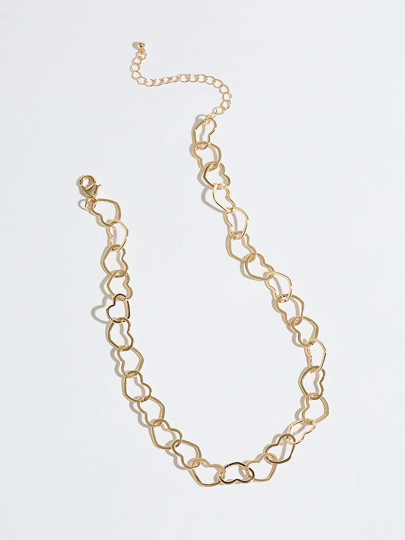 • Gold metal open-heart chain.