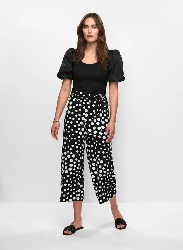 Short Puff Sleeve Top & Belted Polka Dot Capris
