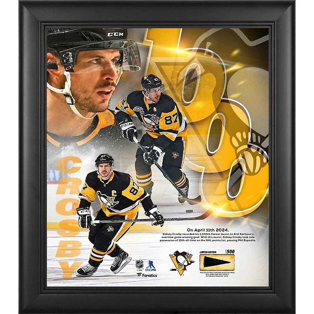 Sidney Crosby Pittsburgh Penguins Encadré 15" x 17" 10ème collage de points de tous les temps avec un morceau de rondelle utilisée dans le jeu - Édition limitée à 500