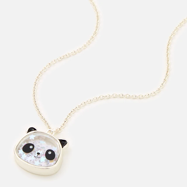 Silver 16'' Panda Shaker Novelty Pendant Necklace