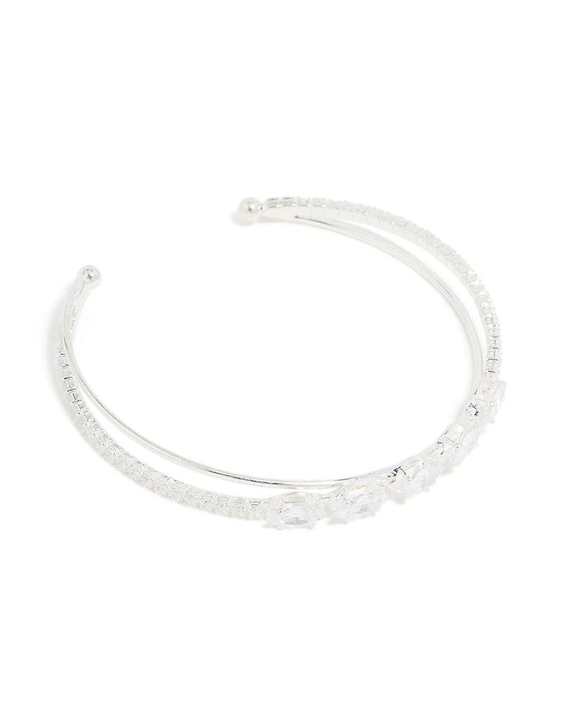 Silver Plated Cubic Zirconia Criss-Cross Wrist Cuff