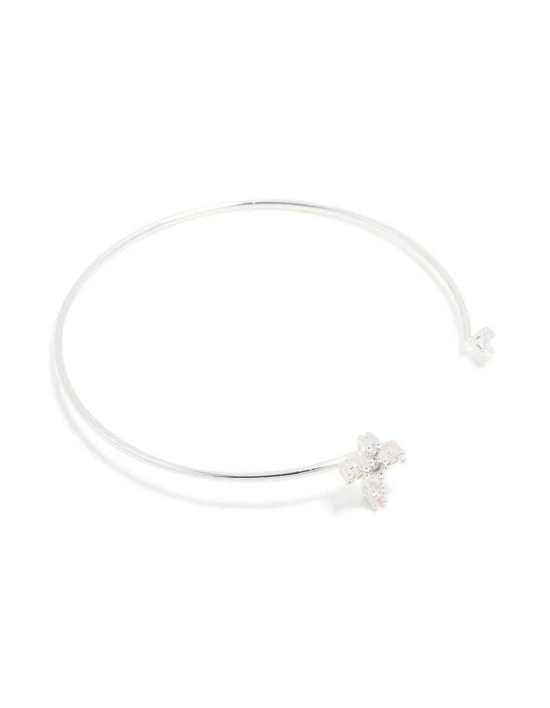 Silver Plated Cubic Zirconia Modern Cross Wrist Cuff