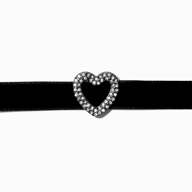 Silver-tone Crystal Heart Pendant Black Velvet Choker Necklace