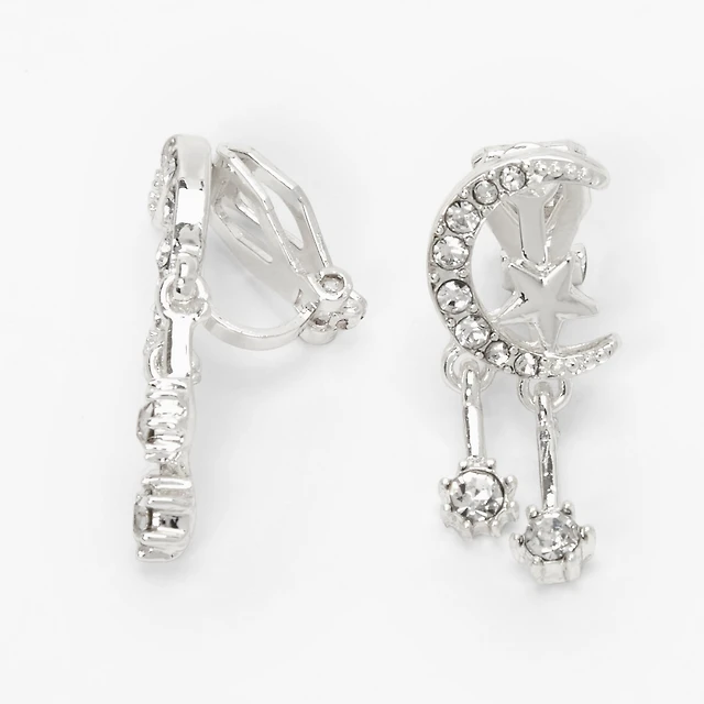 Silver-tone Cubic Zirconia Celestial Clip-On Earrings