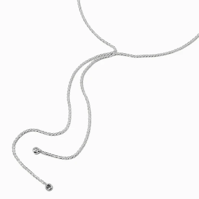 Silver-tone Laser Cut Cubic Zirconia Y-Neck Necklace